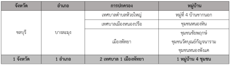 พื้นที่ศึกษาของโครงการ ครอบคลุมพื้นที่ในระยะ 500 เมตร จากกึ่งกลางแนวเส้นถนนสาย ฉ 85 ตามประกาศคณะกรรมการนโยบายเขตพัฒนาพิเศษภาคตะวันออก เรื่องแผนผังการใช้ประโยชน์ในที่ดินและแผนผังการพัฒนาโครงสร้างพื้นฐานและระบบสาธารณูปโภคเขตพัฒนาพิเศษภาคตะวันออก พ.ศ. 2562 ระยะทางประมาณ 4.6 กิโลเมตร รวมทั้งพื้นที่บริเวณ ใกล้เคียง ซึ่งพาดผ่านเขตการปกครองในพื้นที่ 1 จังหวัด 1 อำเภอ 3 เขตการปกครอง